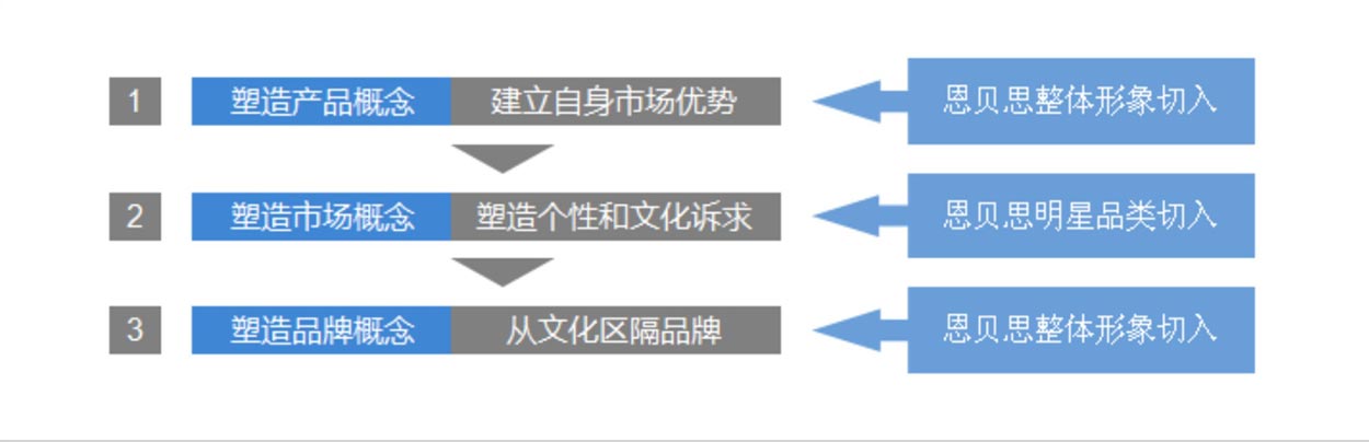 中擂打造恩貝思品牌的終極目的就是要挖掘每個消費者心中的實干創(chuàng)新精神。要使得目標消費者每當一想到實干精神,就馬上想到恩貝思。