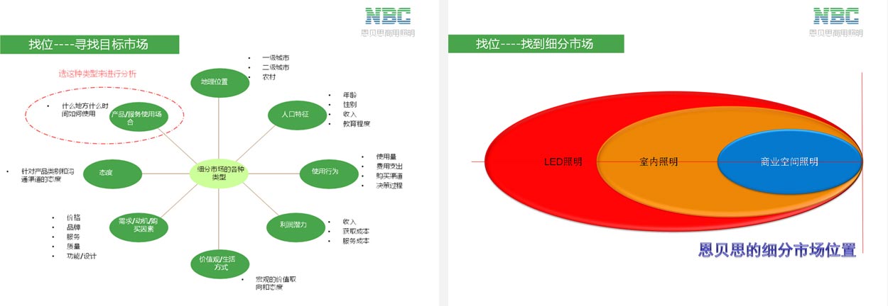 基于前面的市場分析,中擂國際認為,恩貝思LED照明產(chǎn)品取經(jīng)濟實用的競爭概念,則其在滿足LED產(chǎn)品基本屬性的條件下,則足以構(gòu)成對傳統(tǒng)照明品牌和LED照明品牌的雙向狙擊。