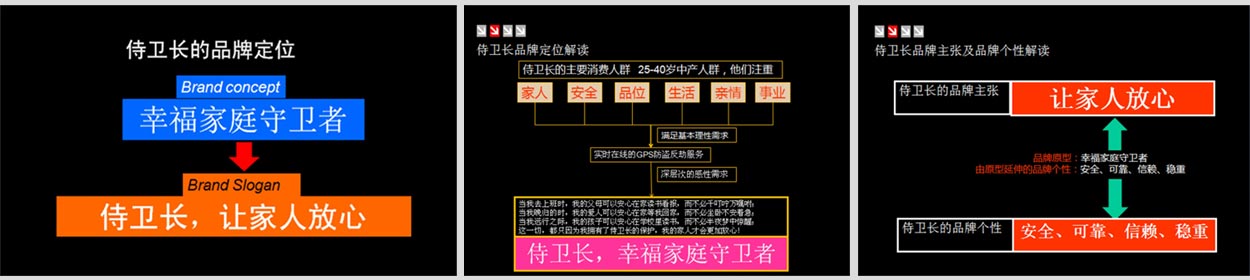 侍衛(wèi)長是幸福家庭的守衛(wèi)者,從侍衛(wèi)長的品牌個性延伸,我們推導總結(jié)得出侍衛(wèi)長的品牌主張:讓家人放心。