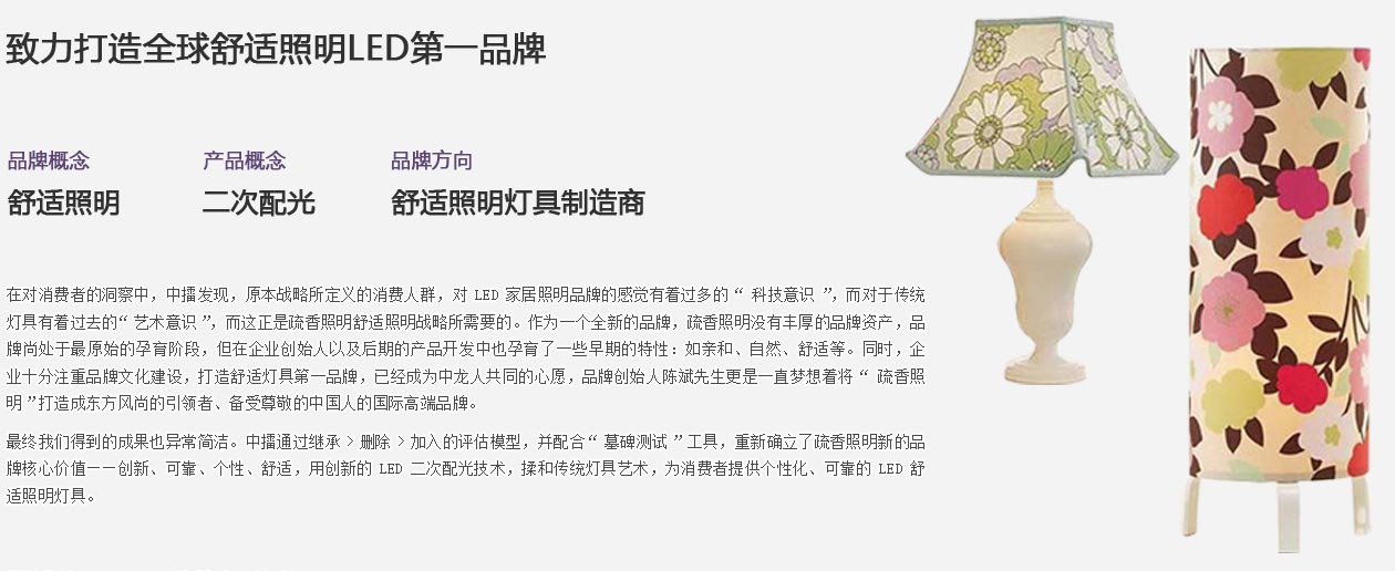本案,從中龍科技的品牌戰(zhàn)略入手,在對其品牌架構(gòu)梳理的基礎(chǔ)上,重點著力打造中龍科技旗下家居照明品牌——疏香照明。