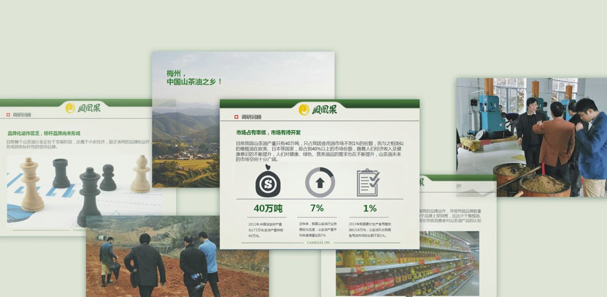 鳳凰果山茶油項目正式啟動后,中擂鳳凰果山茶油項目組第一時間制定了詳細的品牌調研計劃,并在董事長黃文海先生的親自帶隊下深入企業(yè)進行調研。在企業(yè)調研的三天中,中擂鳳凰果山茶油項目組成員深入企業(yè)的生產基地、加工基地對鳳凰果山茶樹的種植情況和茶油的加工流程及生產情況進行調研考察,并與相關管理人員進行面對面的深度交流,全面了解企業(yè)的種植、加工、生產狀況。同時對企業(yè)董事長、市場部、財務部經理等企業(yè)中高層領導進行一對一的訪談,全面了解企業(yè)的經營情況,發(fā)掘企業(yè)的優(yōu)勢與不足,為企業(yè)具有針對性地制定營銷推廣策略提供依據。