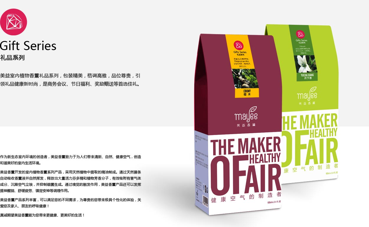 針對這個問題,中擂服務(wù)小組目標非常清晰,就是要在產(chǎn)品上做文章,在中擂黃總的帶領(lǐng)下,我們對美益70多個香薰產(chǎn)品進行分析,從產(chǎn)品的提煉流程,到產(chǎn)品的應用及最終消費者的行為劃分,最終將產(chǎn)品分為:家居、辦公、酒店、禮品四大系列,并對不同的系列制定了不同的表現(xiàn)屬性,制定了“1+4+N”的個性化包裝表現(xiàn)策略。