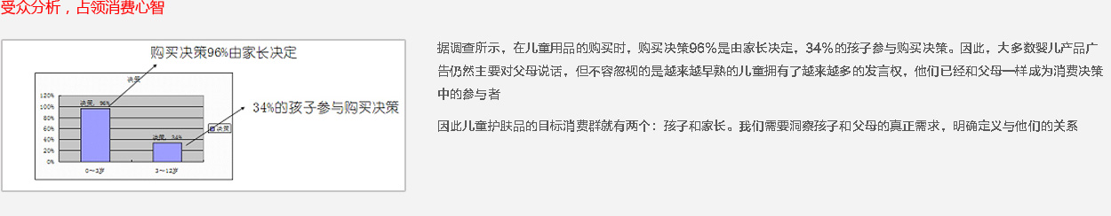 0-3歲嬰兒:這部分人群的消費主要由他們的父母或親人完成(購買決策96%由家長決定)。