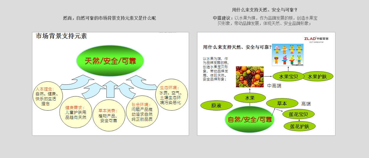 通過水果寶貝,將品牌塑造成一個“陽光、快樂、自然”的形象,做母親放心的品牌,讓兒童喜愛的品牌。