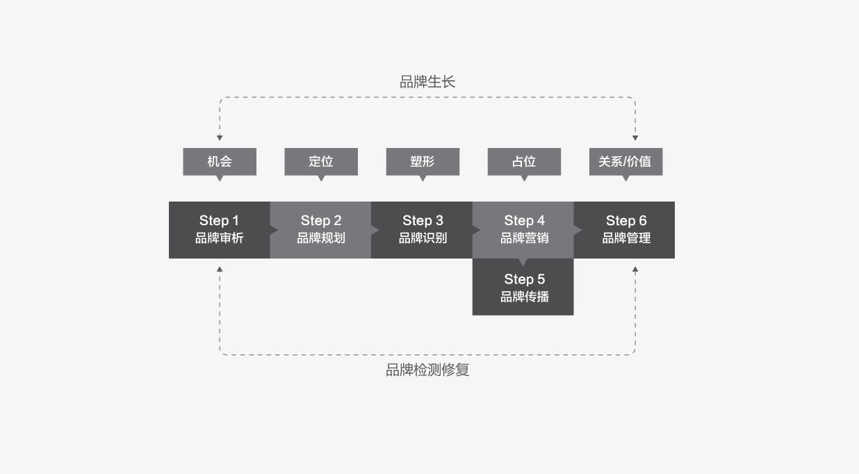 品牌規(guī)劃+品牌識別+品牌營銷+品牌傳播+品牌管理