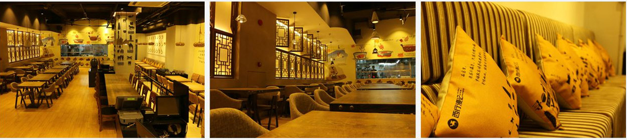 我們要對(duì)西北元素進(jìn)行時(shí)尚化的演繹,讓消費(fèi)者沒(méi)有心理負(fù)擔(dān)地進(jìn)入餐廳。在墻面的裝飾上,我們?cè)谝幻鎵ι喜捎昧寺?huà)形式,手繪出西北的美食風(fēng)景;另一面墻上,巧妙地采用圓碟上的繪畫(huà)形式,描繪出西北的風(fēng)光人文。由此,一副富有特色的西北風(fēng)情景觀徐徐地展開(kāi)。