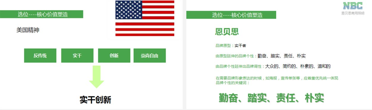 于此,我們也順利地得出恩貝思的廣告語“美國科技,服務大眾”。美國代表了當今世界LED技術的前沿及巔峰,很好的詮釋了恩貝思的出身會議及背景,而服務大眾則是恩貝思根植于大眾,立志打造老百姓都用的起的LED照明產(chǎn)品的企業(yè)理念及抱負。作為廣告語,起核心訴求明確,并容易讓消費者產(chǎn)生豐富的聯(lián)想。